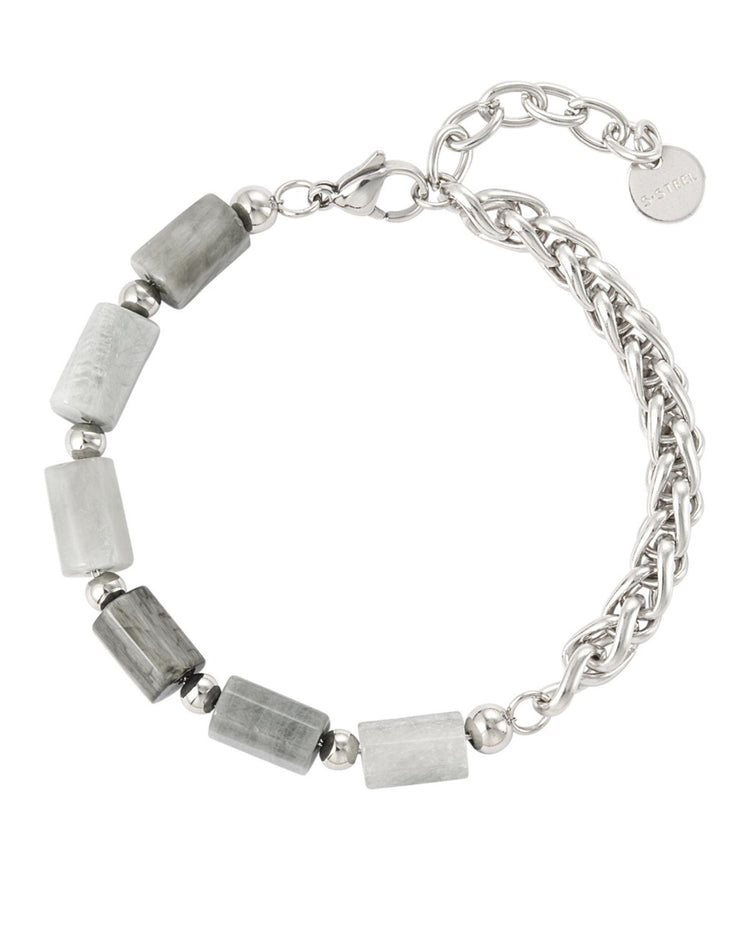 De zachte kralen hebben die rustige, luxe uitstraling en de roestvrijstalen schakel maakt 'm net wat stoerder. Je doet 'm om en je denkt: ja, dit is 'm. Simpel, maar met karakter.